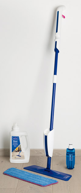 - Gebruik de cleanmop droog of lichtvochtig. De mop is uitwasbaar.