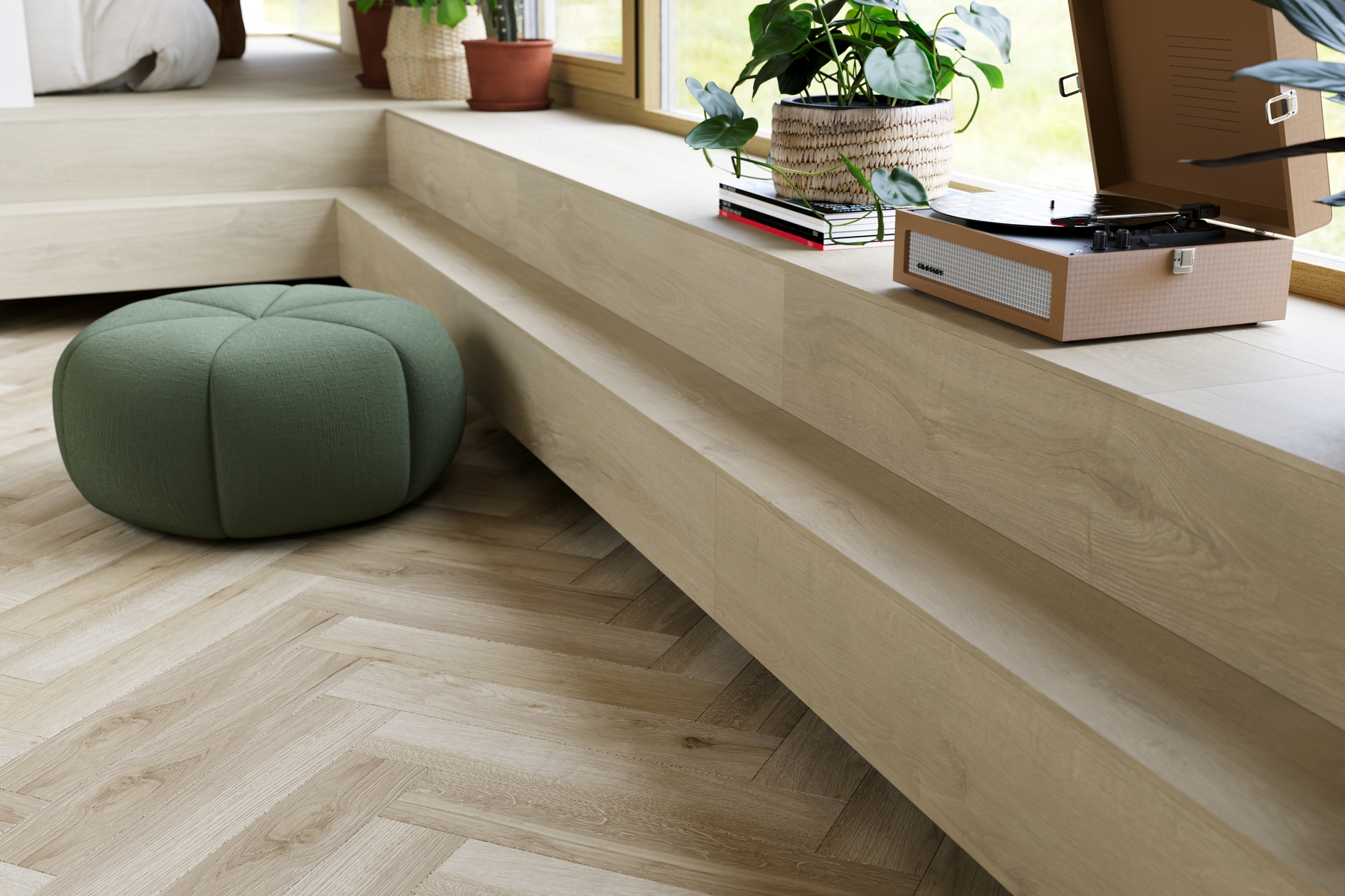 De Saffier Promenade visgraat is niet zomaar een vloer; het is een bewuste keuze voor een gezonder binnenklimaat. Omdat deze vloer volledig PVC-vrij is, hoef je je geen zorgen te maken over schadelijke weekmakers of vluchtige stoffen.