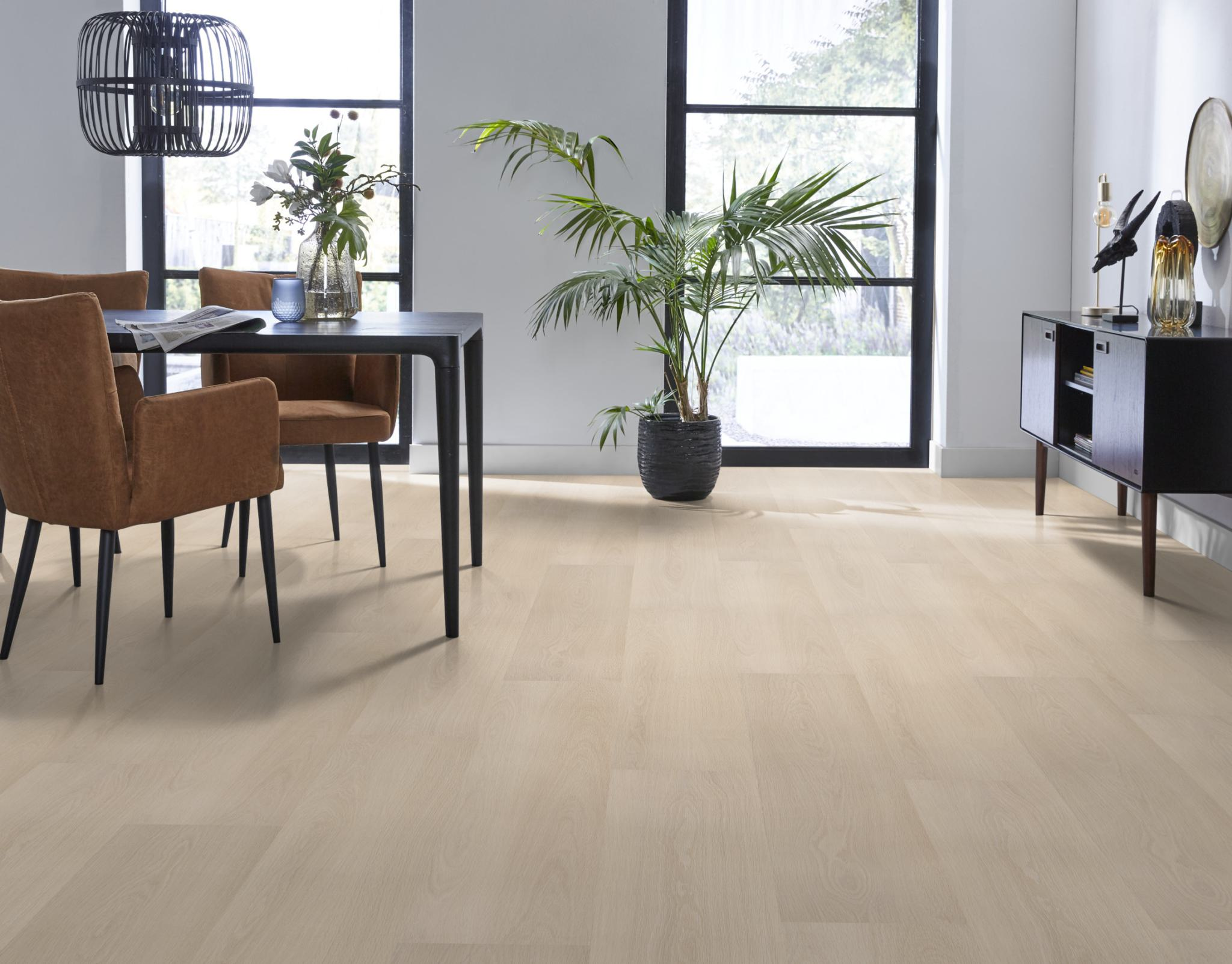 Select eiken serie onderscheid zich in de zeer rustige tekening in de vloer. De vloer is zonder knoesten en geeft een strakke en modieuze uitstraling. De vloer is geschikt voor alle vertrekken in je woning. Met een slijtlaag van 0,55 mm mag deze vloer worden betiteld als een degelijke slijtvaste PVC vloer. Geschikt voor vloerverwarming en -koeling en gemakkelijk in onderhoud, vanwege zijn vochtbestendigheid. Let op Deze vloer heeft geen geïntegreerde ondervloer bestel deze bij (vaak samen gekocht)