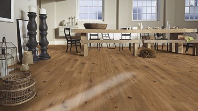 Door de lange planken van maar liefst 152 cm wordt de beleving van een echte houten vloer extra benadrukt. Deze Spivero dryback is verkrijgbaar in vier natuurlijke kleuren met een extra matte toplaag van 0,55 mm. Geschikt voor vloerverwarming en -koeling en gemakkelijk in onderhoud, vanwege zijn vochtbestendigheid.